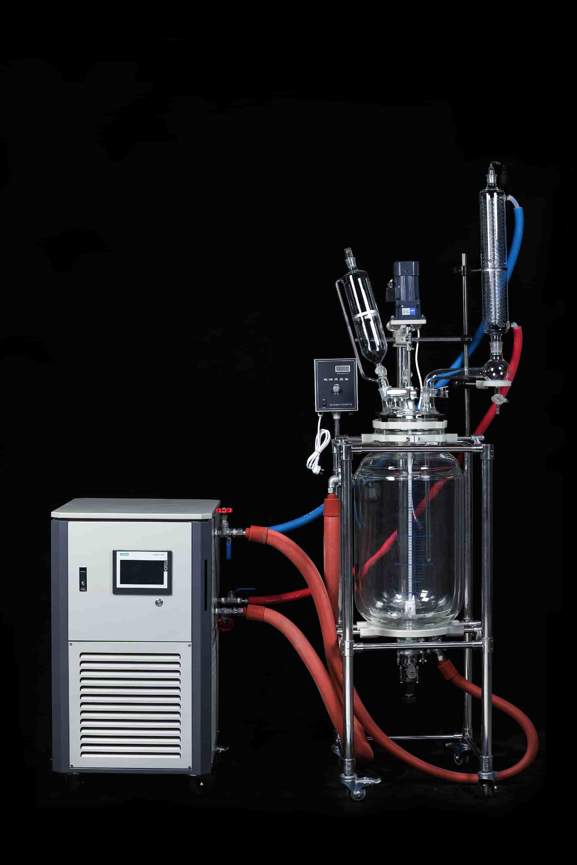 設(shè)備組成:PLC控溫高低溫一體機+雙層玻璃反應(yīng)釜。